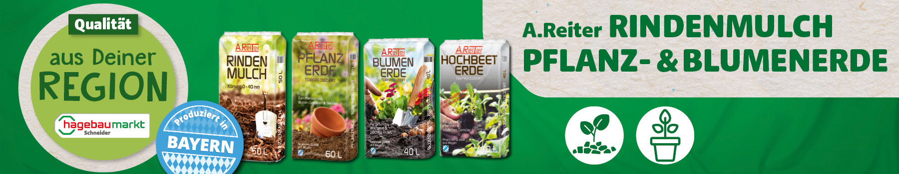 Diese Grundphilosophie zur Erhaltung und Förderung unserer wunderbaren Region übertragen wir auch in unsere hagebau Schneider Märkte: So bieten wir, da wo es geht, möglichst Produkte aus der Region an - egal ob die Produkte in der Region wachsen oder die Produkte im Umland hergestellt oder veredelt werden.
